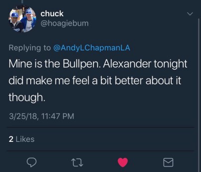 So there. We got that all out of the way. None of that will happen and barring anything egregious, the Dodgers will be fine. Not many teams are in their position and we should try not to forget that. It doesn’t hurt to get exorcise the demons beforehand, though. Even Dodger Stadium got in on the act, with a sewer pipe erupting during the last spring training game of the year. Only good things to come this year!
