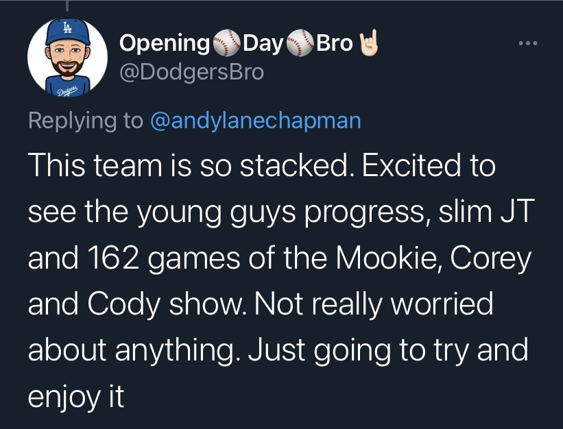 5 thoughts on “Thoughts and Musings from Dodger Fans as 2021 Season Begins