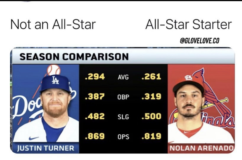 It’s just an all star game. A popularity contest. Not really allstars. Just 30 players from 30 teams plus a few others.. the real allstars are at the end of the season. If you talk about snubs you would have to talk about why players like Betts are there. Same reason arenado is there.