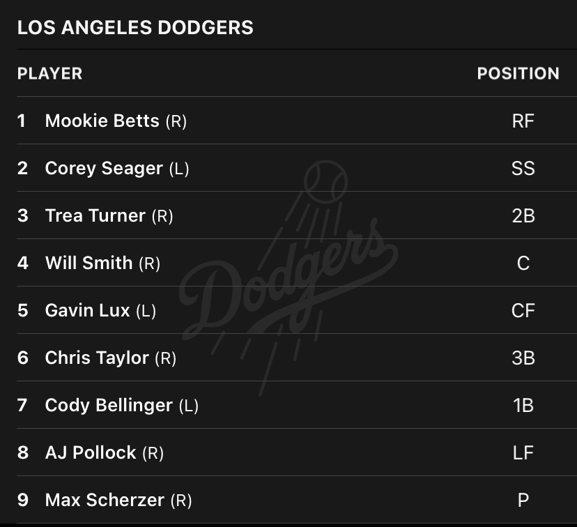 Sunday the Dodgers will look to even the series at one a piece by sending Max Scherzer to the mound and switching up their lineup. Los Angeles will be facing a right hander in Ian Anderson, so Albert Pujols will be back to the bench and Bellinger will be at first base. Gavin Lux will be staring in center, and Taylor at third base.